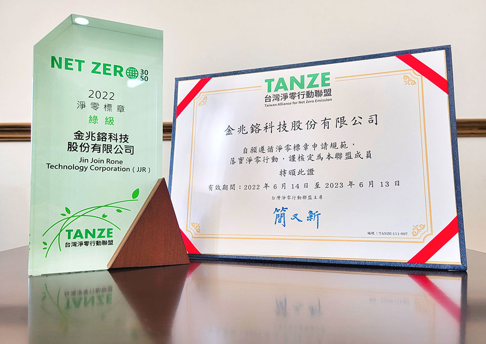 國內首次的「淨零標章頒證典禮暨分享會」於2022年6月14日、假臺北國泰萬怡酒店隆重舉辦。活動由台灣淨零行動聯盟(TANZE)主席、中華民國無任所大使簡又新主持,會中與行政院環境保護署沈志修副署長共同頒發首批經確證通過獲頒「綠級」之標章企業。