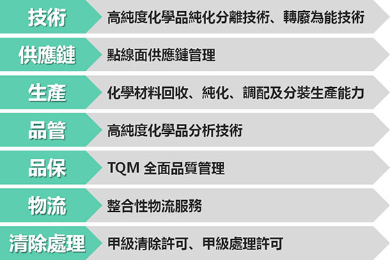 化學溶劑之回收再生、提煉純化及配方型化學品調配、分裝充填